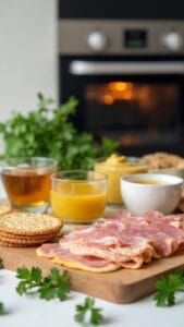 Whisk Honey Mustard Glaze TogetherNow that your crackers are topped with ham and cheese, it's time to whisk together the honey mustard glaze. Grab a small mixing bowl, and let's make this simple yet delicious mixture. Combine two tablespoons of honey, one tablespoon of Dijon mustard, and a teaspoon of olive oil.This sweet and tangy blend is the magic that'll take your cracker melts to the next level. As you whisk, watch how the ingredients come together into a smooth, glossy glaze that promises to enhance every bite.Don't be afraid to experiment a bit! If you're feeling adventurous, try out different glaze variations. Maybe add a splash of apple cider vinegar for some extra zing or a pinch of smoked paprika to bring a hint of warmth.Can you already imagine that delightful flavor? It's going to play beautifully with the savory ham and creamy Swiss cheese. Once you've got that glaze just right, you'll be ready to drizzle it generously over your crackers, ensuring every melt is bursting with flavor.Isn't cooking fun when you can make it your own? Get ready for something truly special!